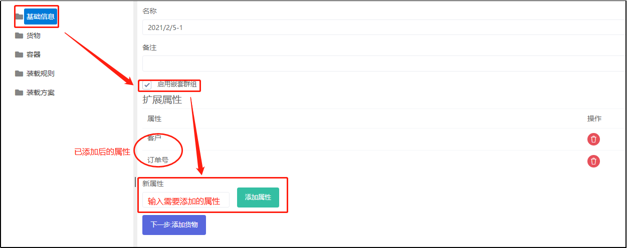 设置完成,点击【确定】,配载规则-嵌套群组下就可看到如下图的展示