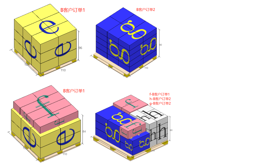 比如:客户A的订单1和订单2分别优先装满一个或多个单一订单容器,当分别剩下的货物不满一个单一订单容器时,客户A下的订单1和订单2可以混装。